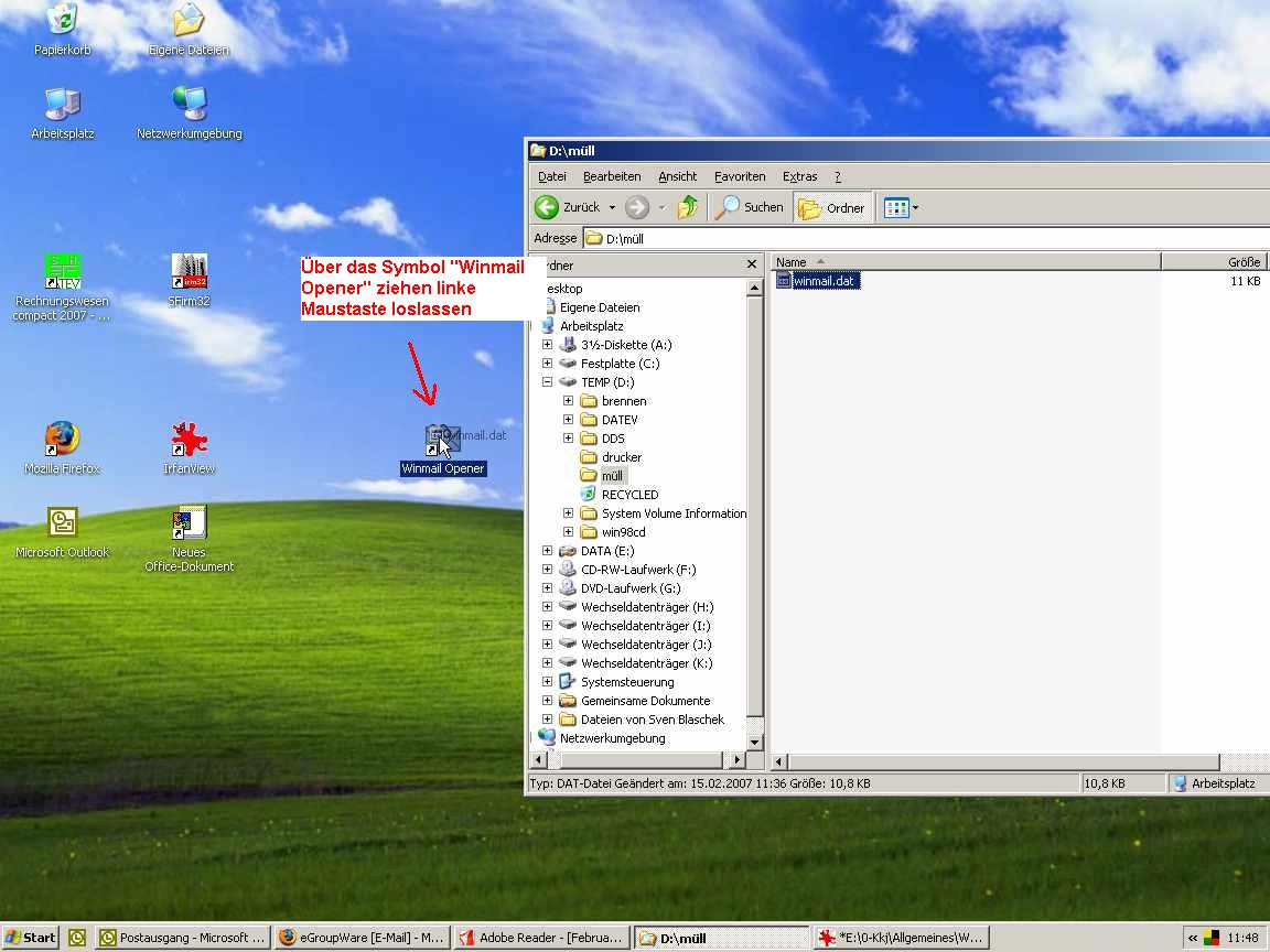 4. Mit dem Mauszeiger und der gedrückten Maustaste über das Symbol "Winmail_Opener" fahren und die linke Maustaste loslassen. Siehe Bild "drop"