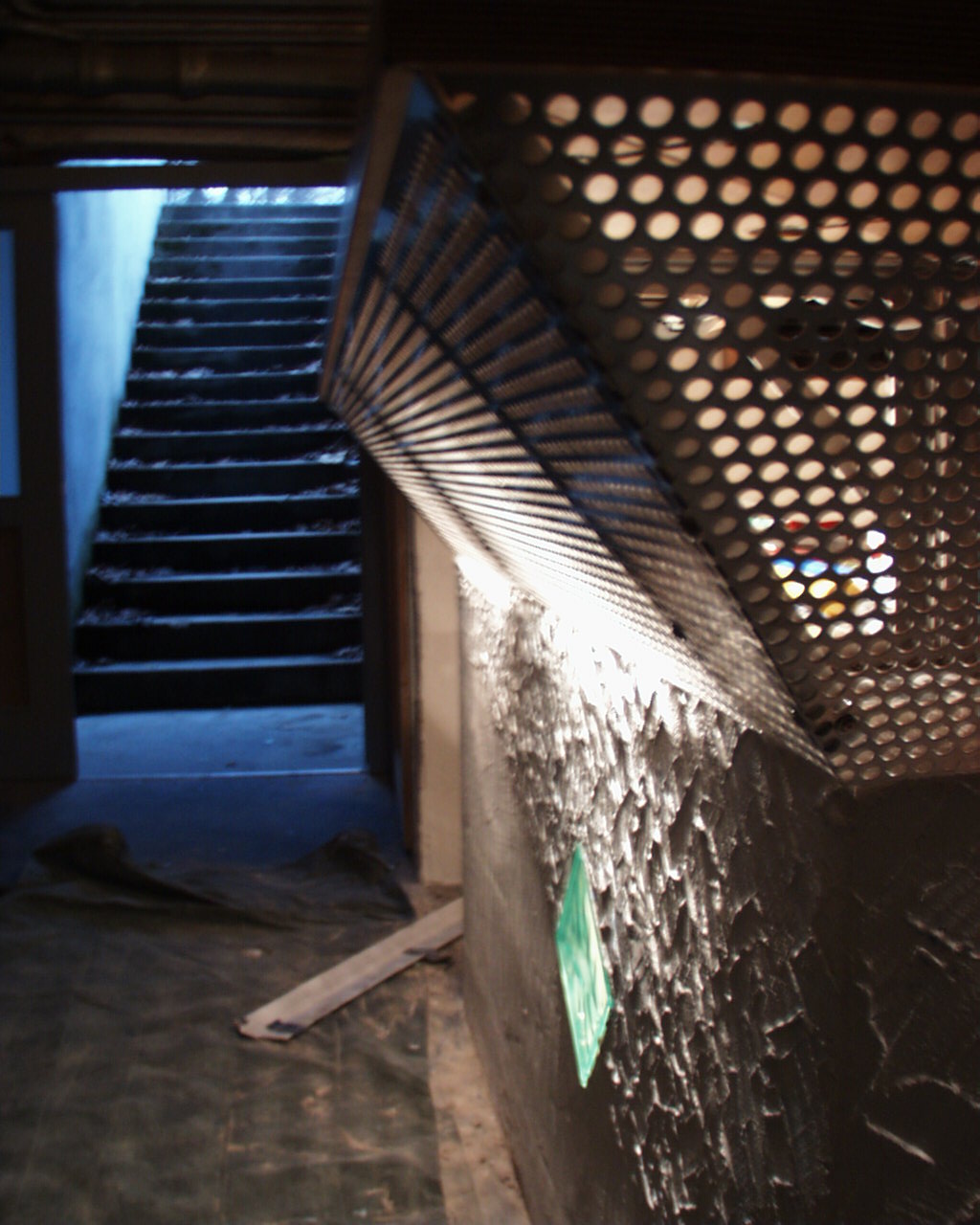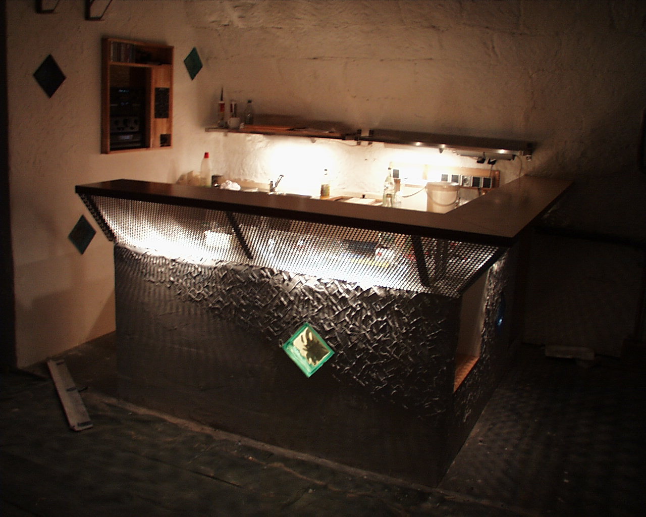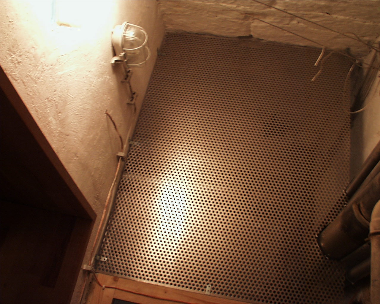 Ausserdem hat er eine Tür vor den Sicherungskasten gesetzt und das Lochblech oberhalb der Tür zur Wasserversorgung angebracht. Ein Lochblech gibt es noch zu montieren, das ist das Lochblech um den Abzweigkasten an der Decke abzudecken. Ausserdem muss die Eingangstür noch beigeputzt werden. Danach fehlt nur noch die große Putzaktion und die Sache ist erledigt.