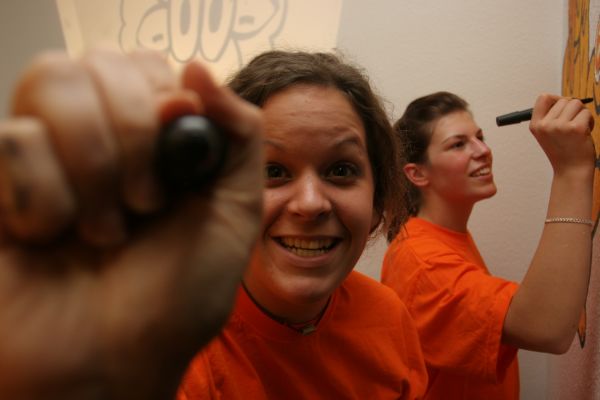 Alle die da waren haben toll mitgearbeitet und haben nicht davor zurückgeschreckt schon am Freitag Abend noch mit dem Abkleben und Streichen zu beginnen, obwohl die Meisten einige Stunden vorher im Stau gestanden waren. Eure Kreativität konnte man förmlich riechen. Wir hoffen es hat euch genausoviel Spaß gemacht wie uns. Vielen Dank nochmals an alle die geholfen haben.