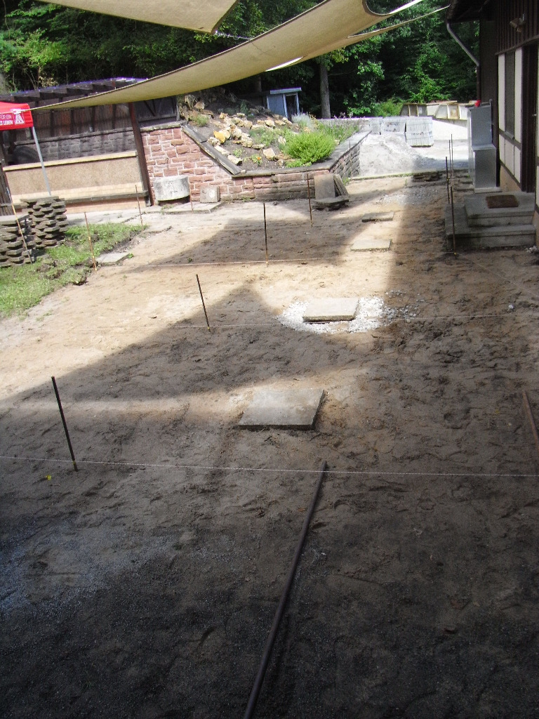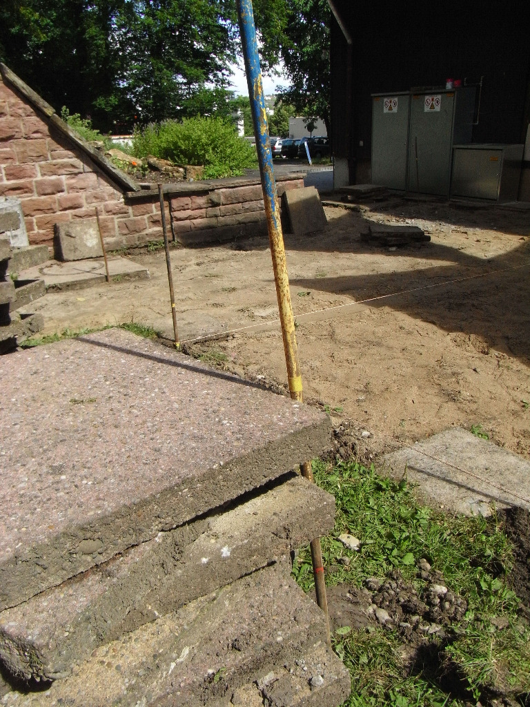 Da unsere Gehwegplatten schon einiges mitgemacht haben, werden die Wege rund ums Haus und die Platten hinter der Küche neu gesetzt.