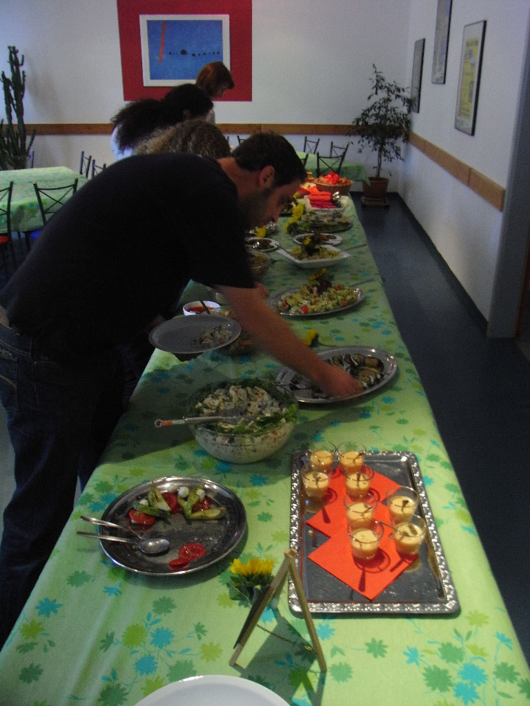 Ab 18:00 wurde gegrillt und um halb sechs war das Buffet eröffnet. Das essen war sehr lecker, wir bekamen nur sehr gute Rückmeldungen erhalten. Außer dem klassischen Grillgut gab es Lammhüfte, Dorade, Tintenfisch und unzählige Vorspeisen, Dips und Beilagen.