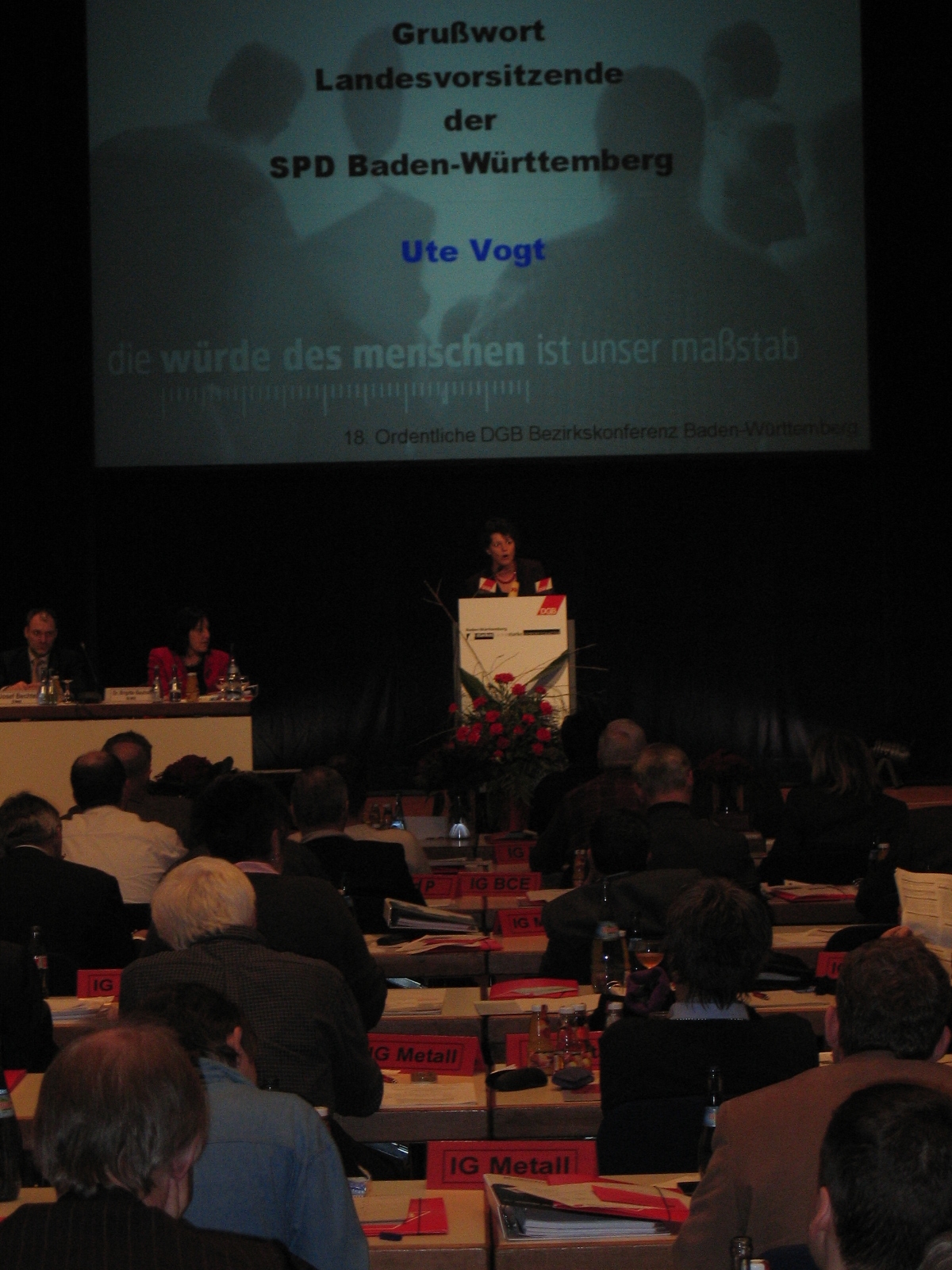 Nach dem Mittagessen sprach Ute Vogt von der SPD ein Grußwort an die Delegierten.