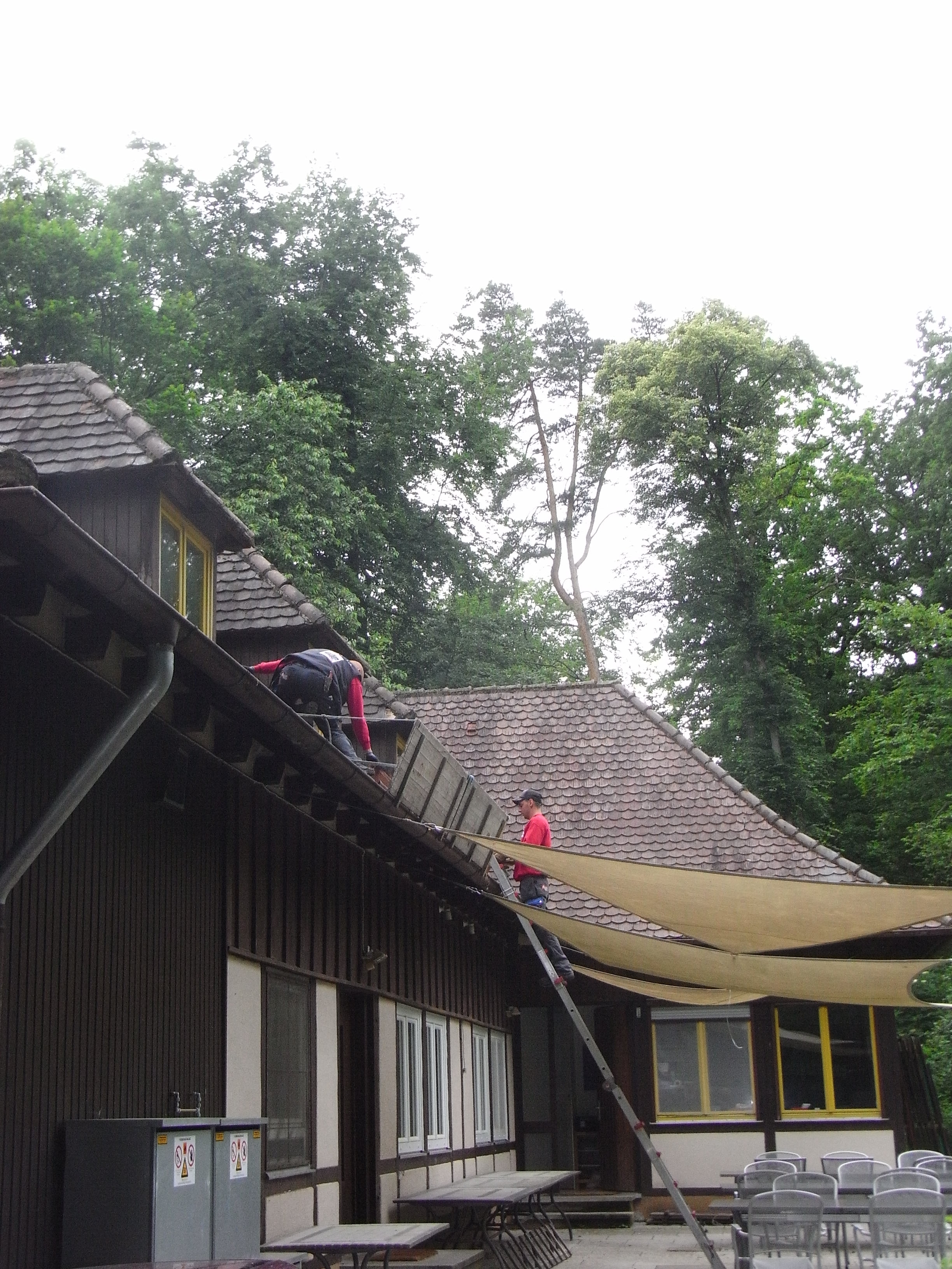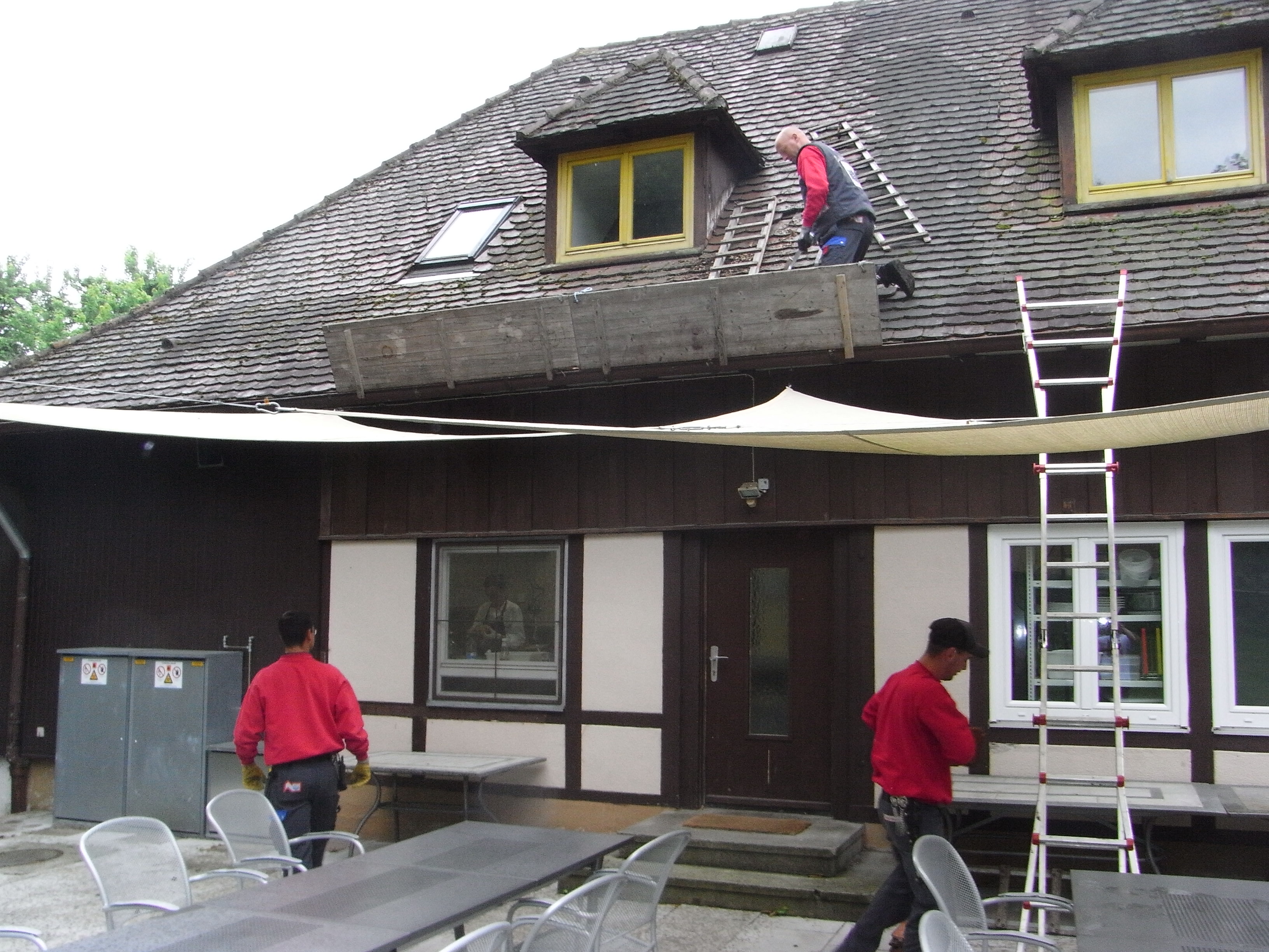 aufgrund einer Gutachter Empfehlung das Dach zu sanieren und nicht komplett zu ersetzen, haben die Reperaturen am Donnerstag begonnen.