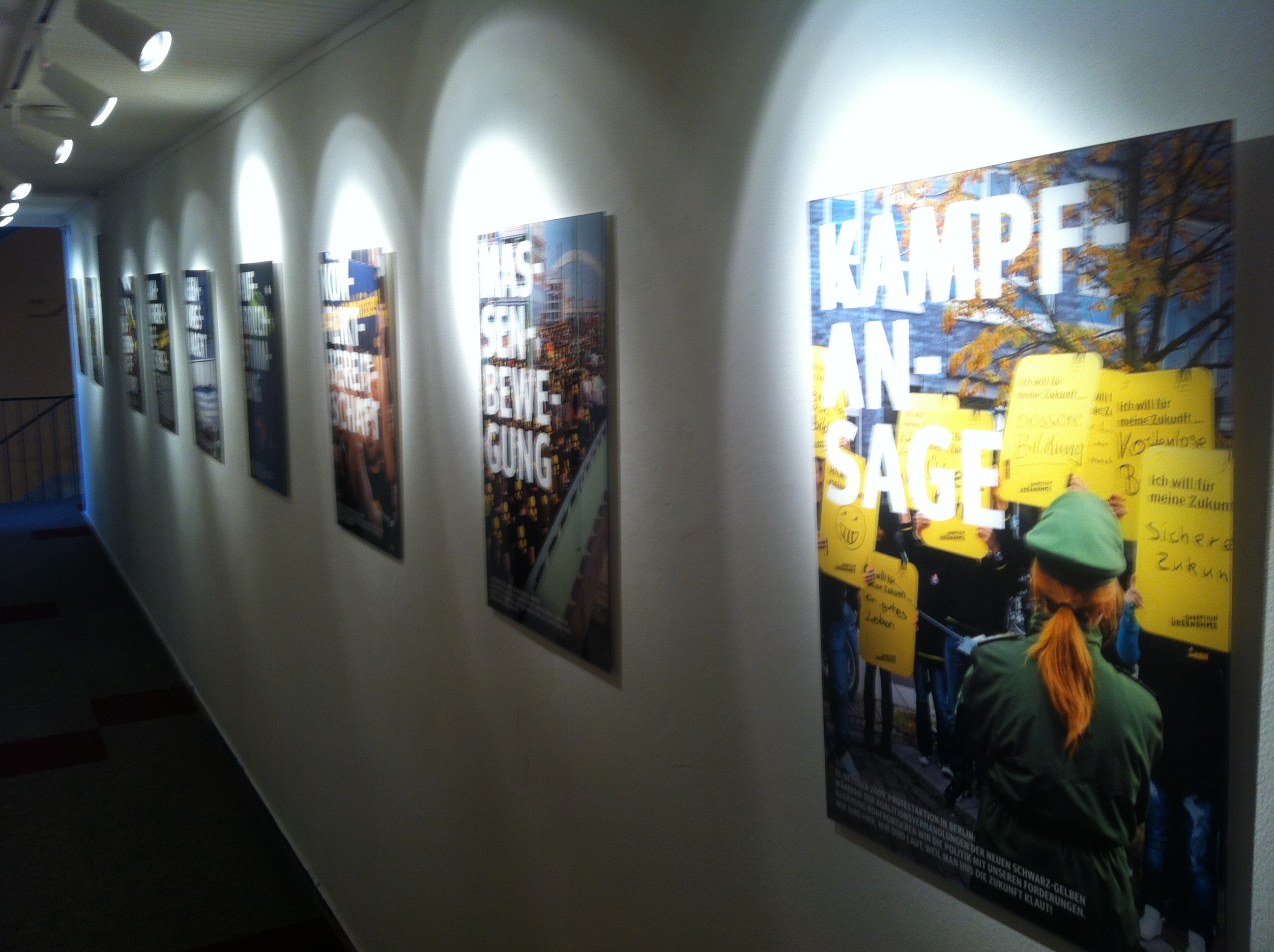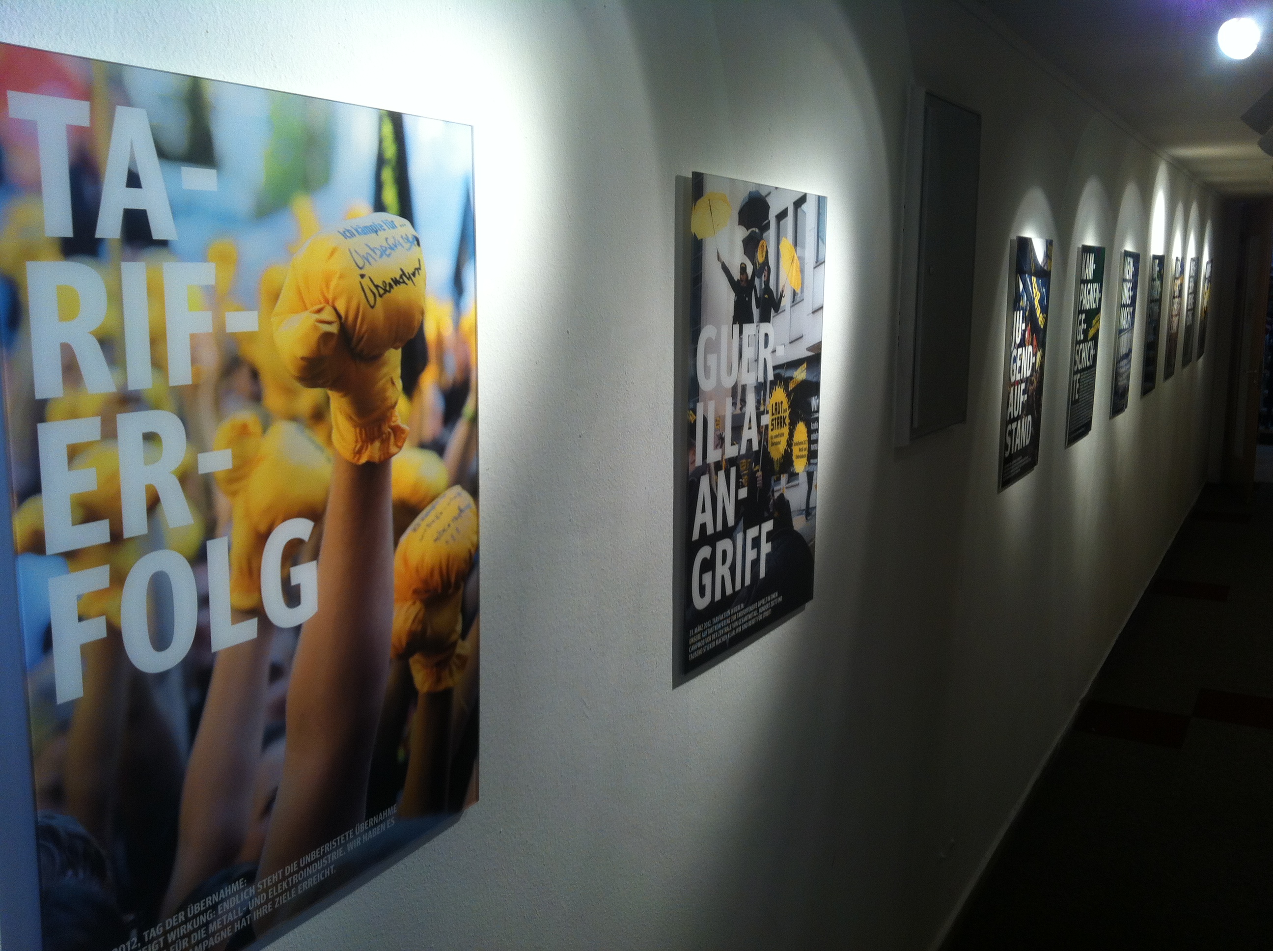 ... im Flur neben dem großen Seminarraum lagen schon lange die Lampen im argen. Da wir von der IG Metall eine gerahmte Bilderserie zur Operation Übernahme gespendet bekommen haben, wurden die Bilder nun ins rechte Licht gerückt.