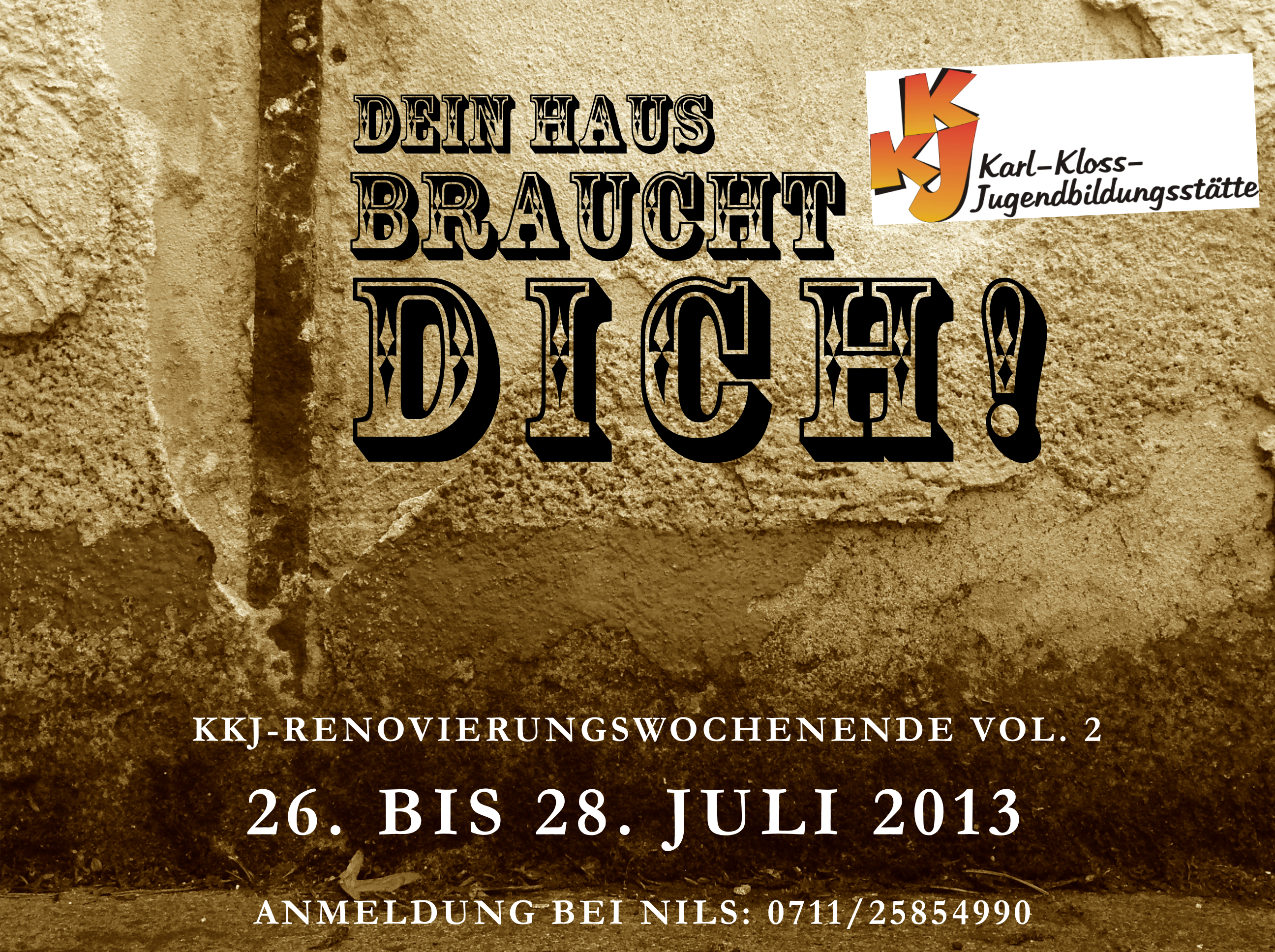 Wir laden Euch alle herzlich ein zum zweiten Renovierungswochenende vom 26. bis 28 Juli 2013! Anmeldungen ab sofort bei Nils im Büro unter 0711 25 85 499 10.