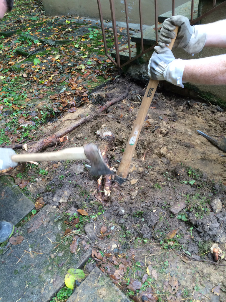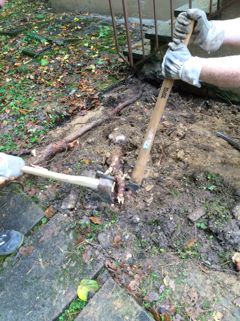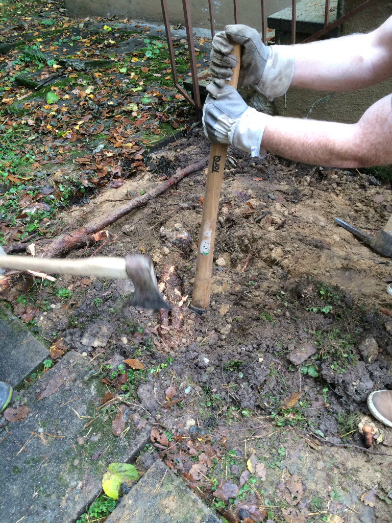 Der Plan wurde zur Punktlandung. Das Schild dauer länger, das war von vornherein klar, aber die Platten waren pünktlich um 16:30 Uhr wieder am Boden und die Wurzeln welche für das anheben sorgten sind Geschichte.