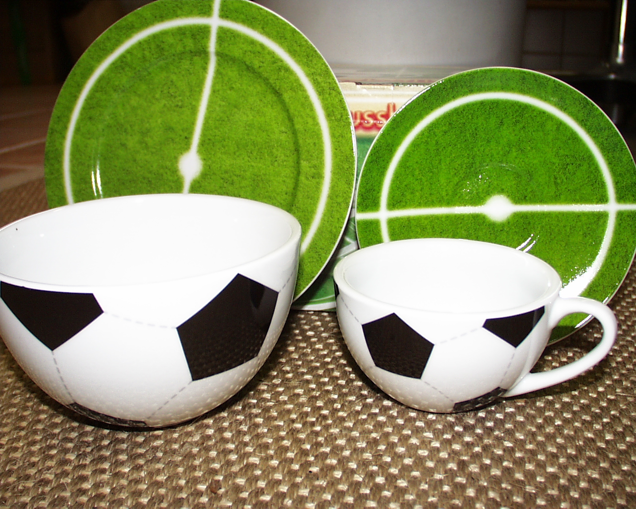 1. Platz: 4 teiliges Fußball-Frühstücksset (Müslischale, Tasse und Untertasse, Frühstücksteller) (siehe Foto)